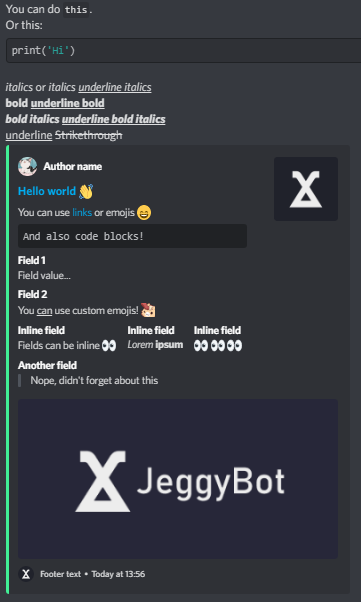 One of the functions of the bot is to create your own embeds (or beautiful messages).