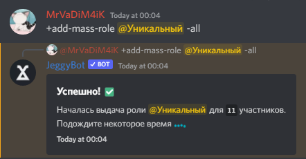 Выдача роли занимает некоторое время. Если выдача роли происходит у 1 000 и более участников, то этот процесс может занять в среднем 5-10 минут.