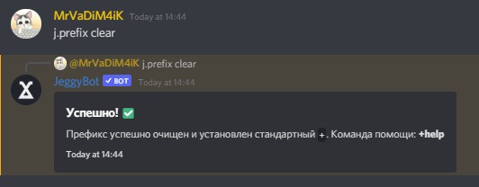 Для того чтобы вернуть стандартный префикс бота, напишите данную команду: