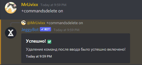 Теперь при использовании команды бот будет удалять распознанные команды.