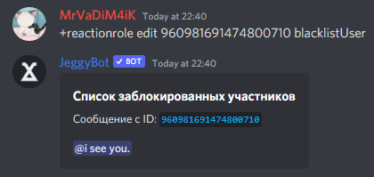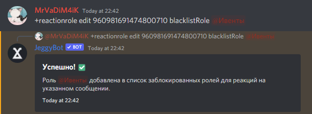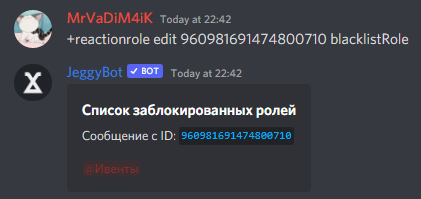 Заблокированные роли — Функция, позволяющая запретить взаимодействовать с реакциями на указанном вами сообщении необходимым ролям.