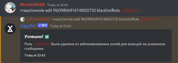 После этого действия бот не будет взаимодействовать и выдавать/забирать роли у заблокированных ролей.