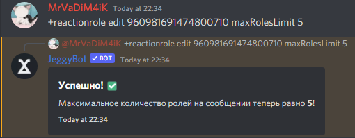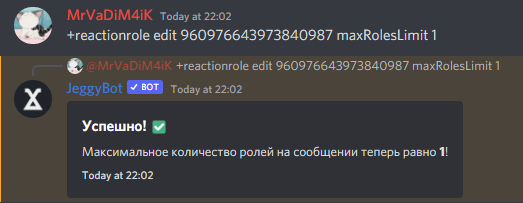 Теперь участник сможет нажать и получить столько ролей по реакции, сколько вы установили на этом сообщении.