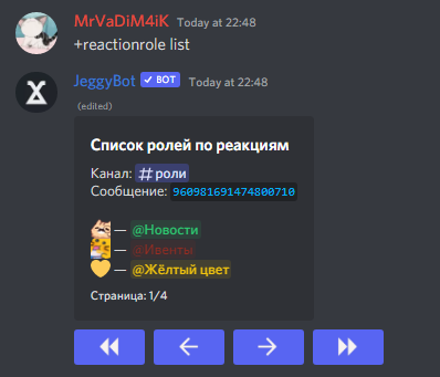 Если вы удалили канал и не знаете ID сообщения, то для этого есть возможность посмотреть весь список ролей по реакции командой +reactionrole list.