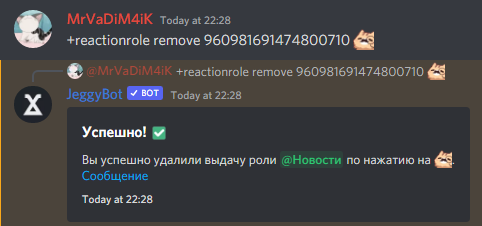 После этого бот перестанет обрабатывать указанную вами реакцию и выдавать привязанную к ней роль.